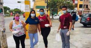 Un groupe de personnes de La Iglesia del Nazareno de El Povenir au Pérou se rassemblent pour aider les immigrants vénézuéliens qui ont été impactés économiquement par la pandémie de COVID-19.
