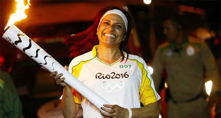 Silvia Lana, an assistant at the Southeast Paulista District Office, carries the Olympic torch.
