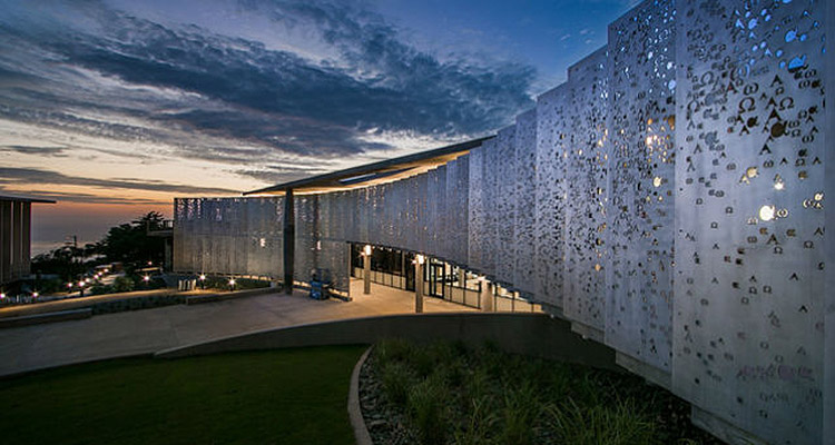 Designed by San Diego-based architectural firm Carrier Johnson + CULTURE and constructed by Rudolph and Sletten General Contractors, the 36,000-square-foot complex sits at the heart of the San Diego campus. The building, marked by a curved stainless-steel environmental screen and its prominent coastal site, is a memorable home for the university’s rapidly growing interdisciplinary science program, unifying Christian values with a broad curriculum and state-of-the-art technology, laboratories, and classrooms.