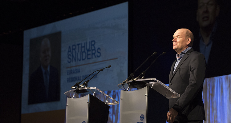 Em 23 de junho, o Diretor Regional da Eurásia Arthur Snijders compartilhou histórias de como igrejas locais em toda a Eurásia estão subindo para enfrentar desafios como secularismo, pobreza e o influxo de refugiados através do amor de Cristo quando ele apresentou antes das Missões Globais Nazarenas Internacionais Convenção na Assembleia Geral de 2017 e Convenções em Indianapolis, Indiana, EUA.
